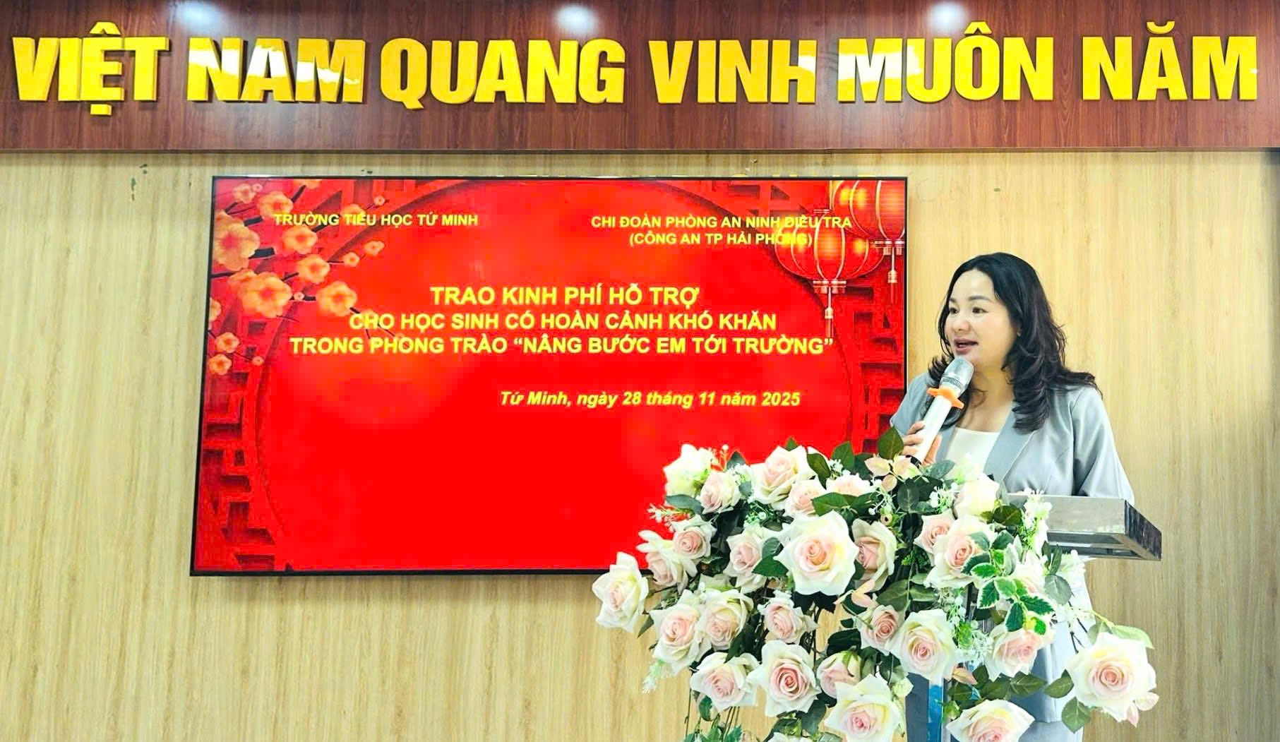 Sáng ngày 28/11, Trường Tiểu học Tứ Minh phối hợp cùng Chi đoàn Phòng An ninh điều tra – Công an thành phố Hải Phòng tổ chức chương trình “Nâng bước em tới trường” và trao kinh phí hỗ trợ cho em Vũ Yến Chi, học sinh lớp 2K.