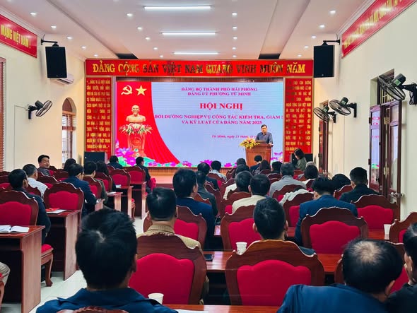 Chiều ngày 21/11, Đảng ủy phường Tứ Minh phối hợp với Ủy ban Kiểm tra Thành ủy Hải Phòng tổ chức Hội nghị bồi dưỡng nghiệp vụ công tác kiểm tra, giám sát cho cấp ủy chi bộ và cán bộ được phân công phụ trách nhiệm vụ kiểm tra, giám sát trên địa bàn phường. Dự hội nghị có các đồng chí báo cáo viên của Ủy ban Kiểm tra Thành ủy; đồng chí Vũ Cường – Phó Bí thư Thường trực Đảng ủy phường; cùng các học viên là Bí thư chi bộ, cấp ủy viên và cán bộ chuyên trách, kiêm nhiệm công tác kiểm tra, giám sát tại các tổ chức cơ sở Đảng của phường.