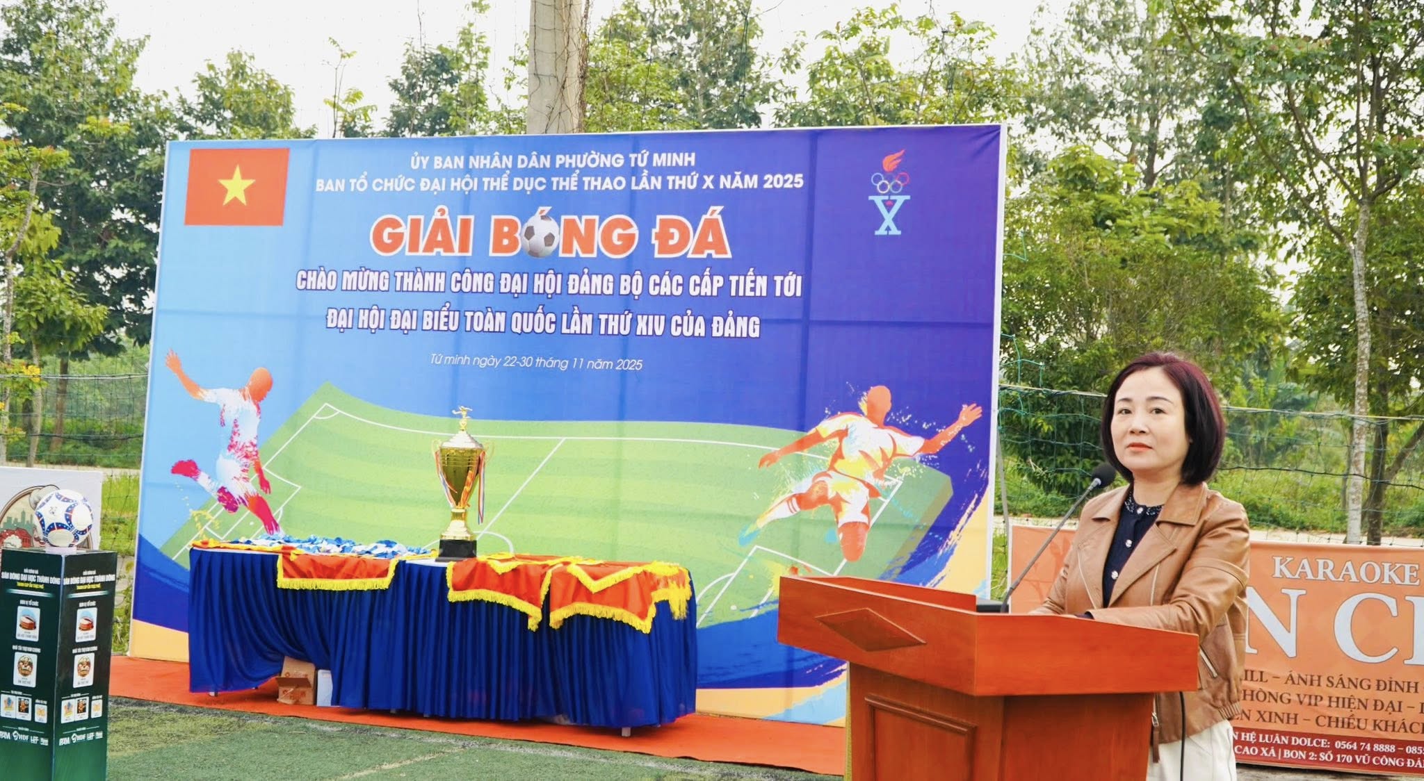 Phát biểu khai mạc, đồng chí Nguyễn Thị Sâm - Phó chủ tịch thường trực UBND phường Tứ Minh khẳng định giải đấu là hoạt động quan trọng trong chương trình Đại hội TDTT, tạo sân chơi lành mạnh, góp phần thúc đẩy phong trào thể thao quần chúng và tăng cường tinh thần đoàn kết trong cộng đồng.