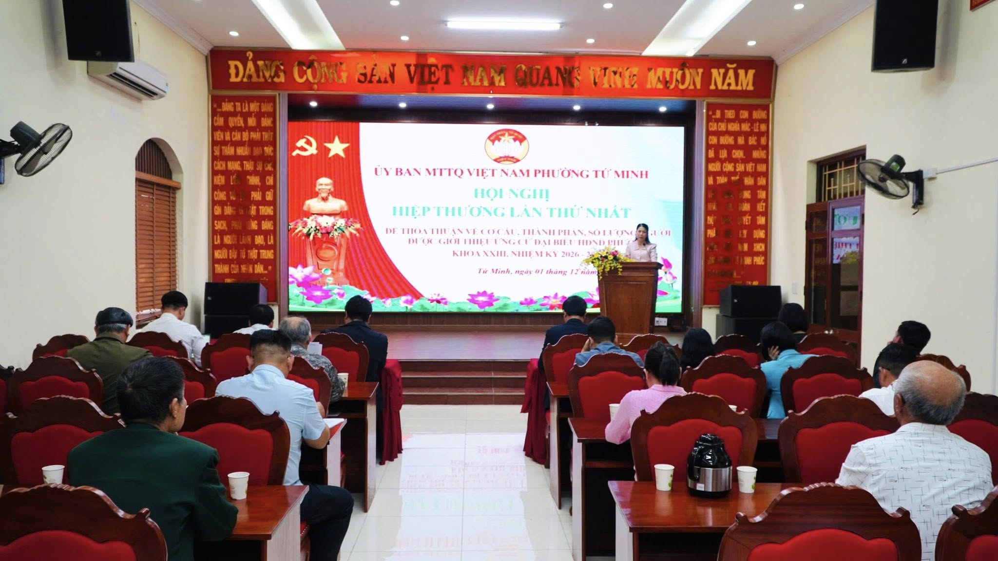 Chiều ngày 1/12, Ban Thường trực Ủy ban MTTQ Việt Nam phường Tứ Minh đã tổ chức Hội nghị hiệp thương lần thứ nhất nhằm thỏa thuận về cơ cấu, thành phần và số lượng người được giới thiệu ứng cử đại biểu Hội đồng nhân dân phường nhiệm kỳ 2026–2031, đảm bảo đúng quy định của pháp luật và các văn bản hướng dẫn của cấp trên. Dự và chỉ đạo Hội nghị có đồng chí Nguyễn Tá Duân - Bí thư Đảng ủy, Chủ tịch HĐND, Trưởng Ban Chỉ đạo bầu cử phường.