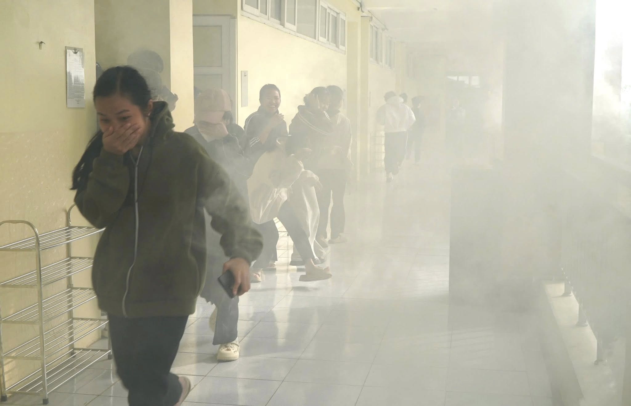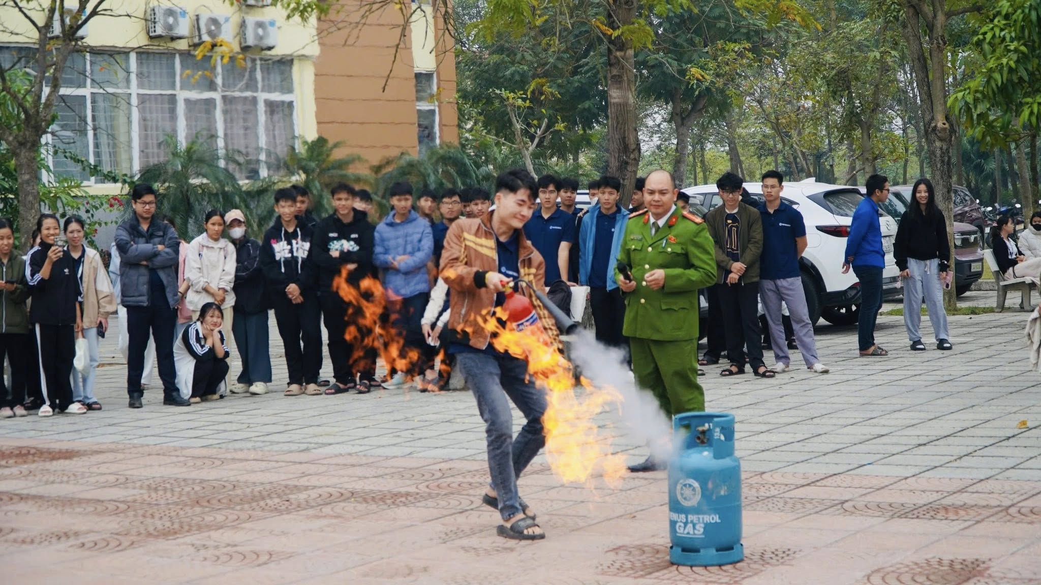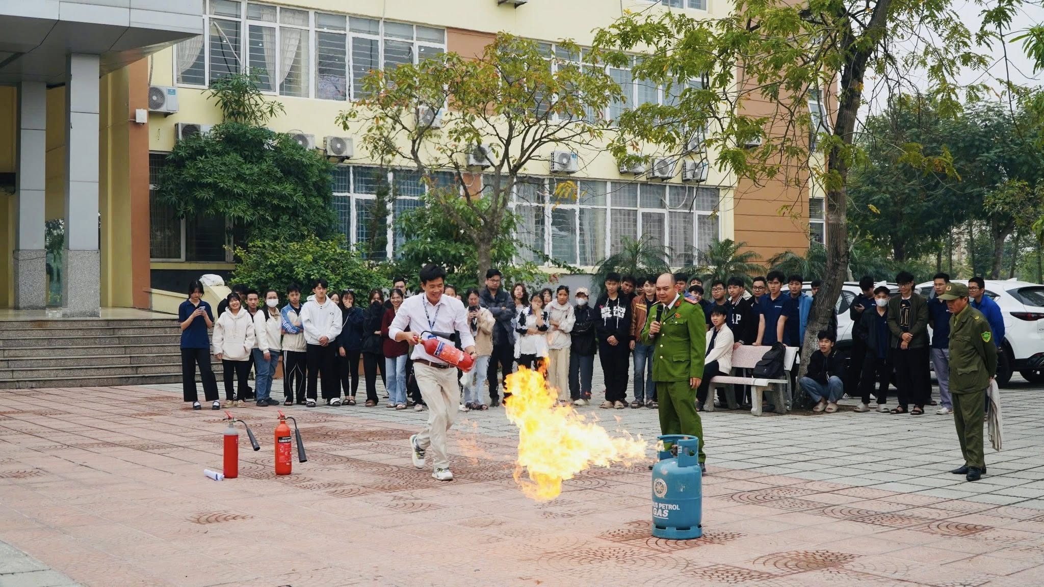 Tập huấn phòng cháy chữa cháy với nhiều tình huống thực hành giả định tại trường Đại học Thành Đông