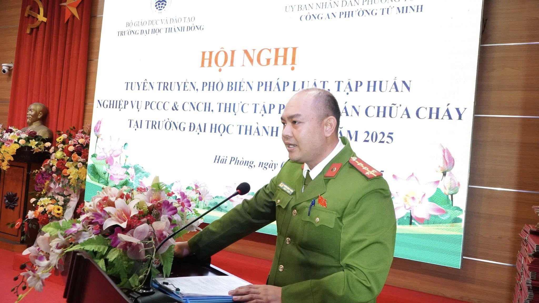 Sáng ngày 5/12, UBND phường Tứ Minh phối hợp với Trường Đại học Thành Đông tổ chức Hội nghị tuyên truyền, phổ biến pháp luật và tập huấn nghiệp vụ phòng cháy, chữa cháy – cứu hộ, cứu nạn (PCCC và CHCN) cho giáo viên và sinh viên nhà trường. Dự Hội nghị có đại diện Công an phường Tứ Minh, BGH Trường Đại học Thành Đông; cùng hàng trăm giáo viên và sinh viên nhà trường.
