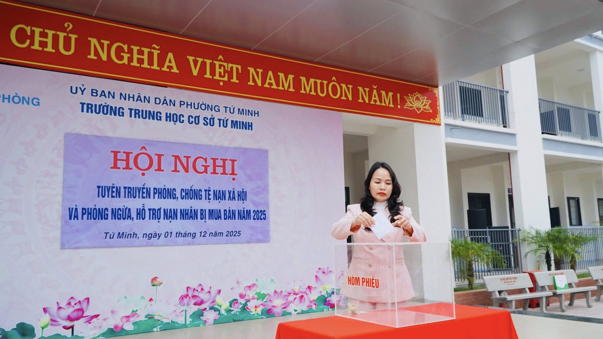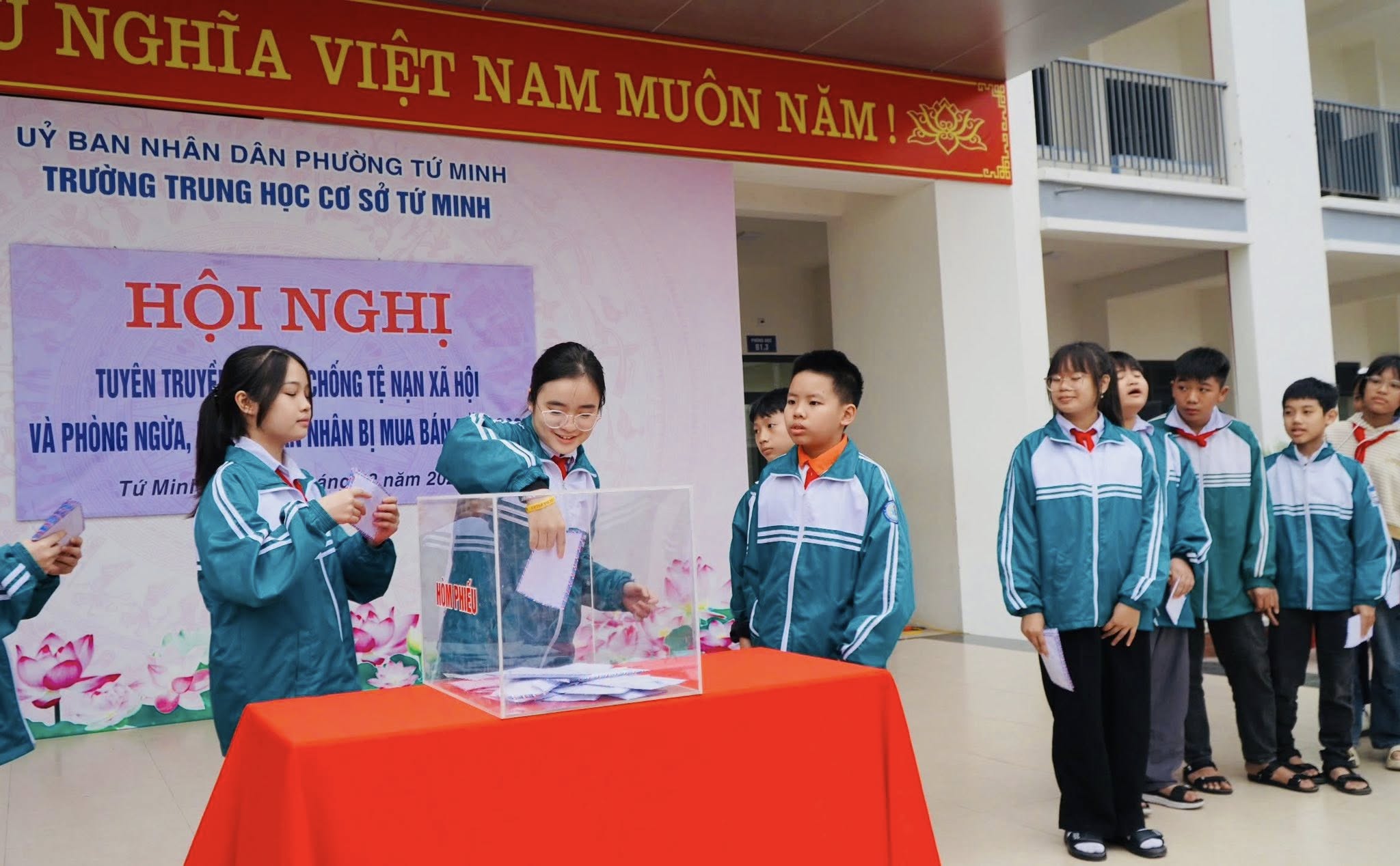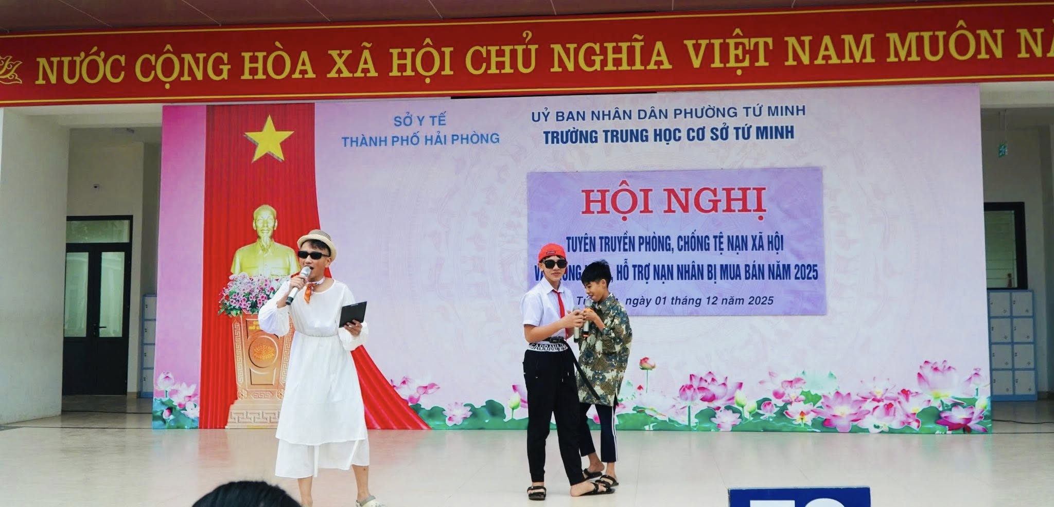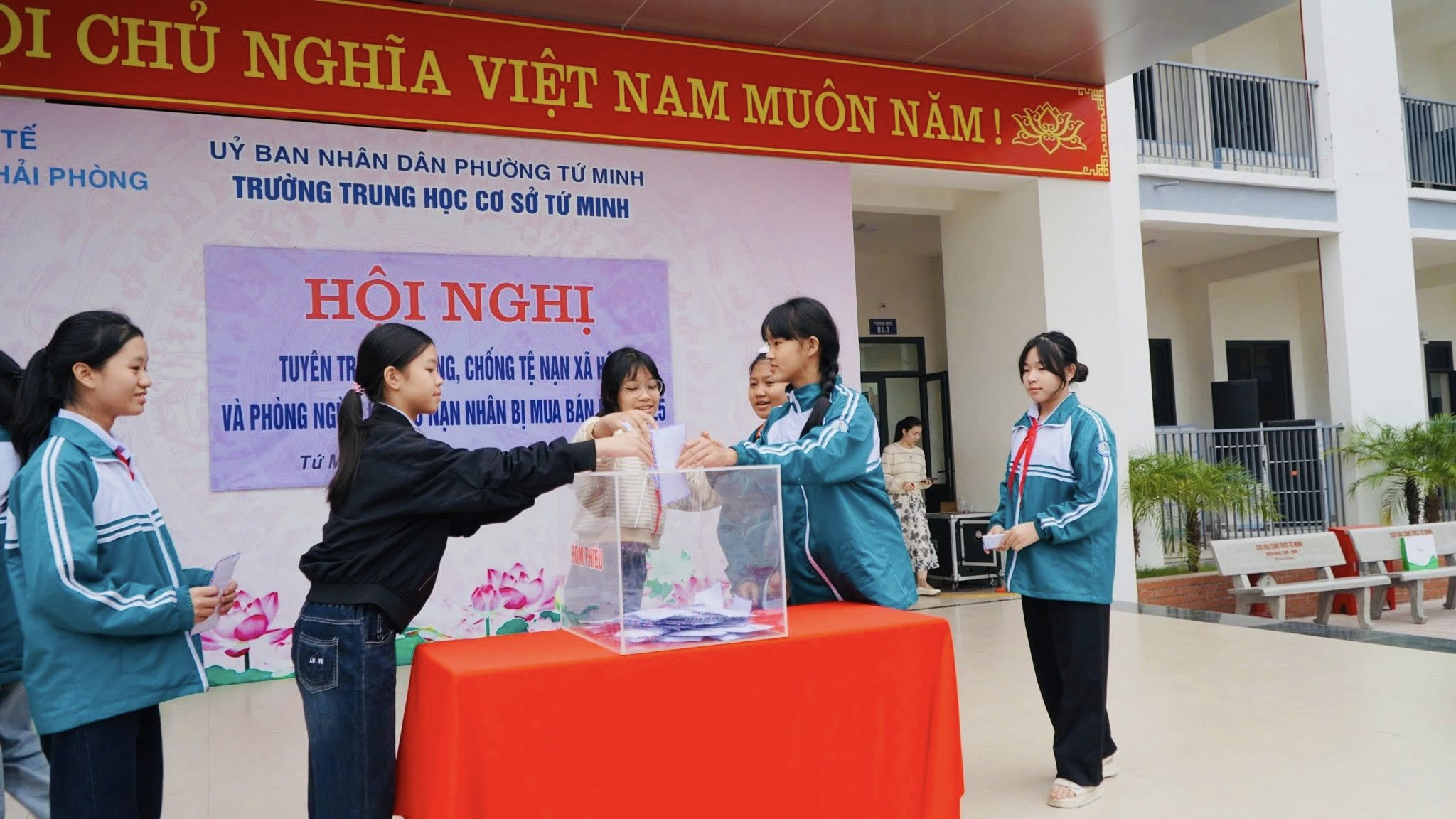 Hưởng ứng Ngày Thế giới phòng chống AIDS, sáng ngày 1/12, Trường THCS Tứ Minh phối hợp với Sở Y tế Hải Phòng tổ chức Chương trình tuyên truyền phòng chống tệ nạn xã hội và phòng ngừa, hỗ trợ nạn nhân bị mua bán năm 2025 nhằm nâng cao nhận thức và kỹ năng tự bảo vệ cho học sinh.