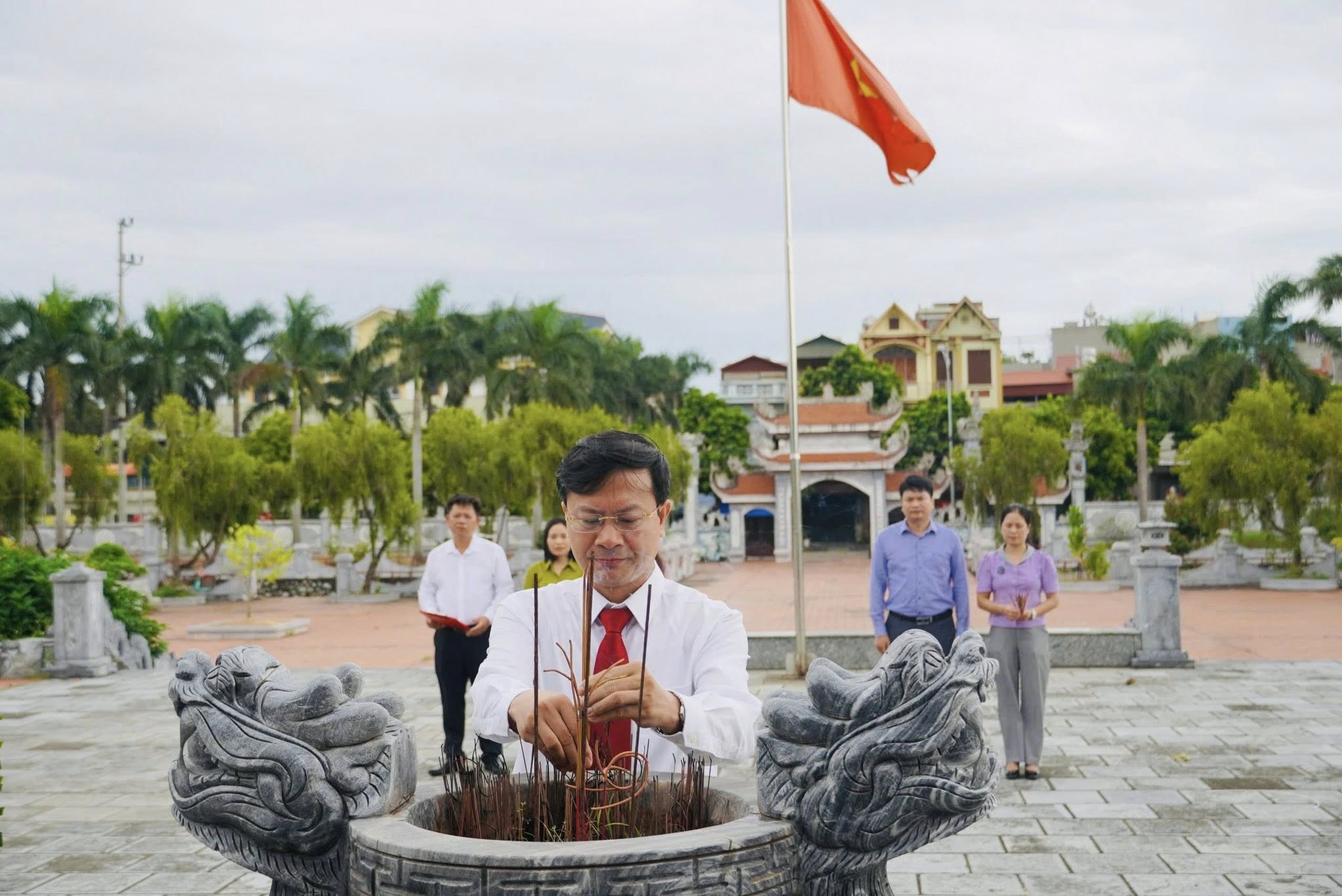 Trong không khí trang nghiêm, đoàn đại biểu đã kính cẩn dâng nén hương thơm, tưởng nhớ và tri ân công lao to lớn của các anh hùng liệt sỹ – những người con ưu tú của quê hương đã anh dũng hy sinh vì độc lập, tự do của Tổ quốc, vì hạnh phúc của nhân dân.