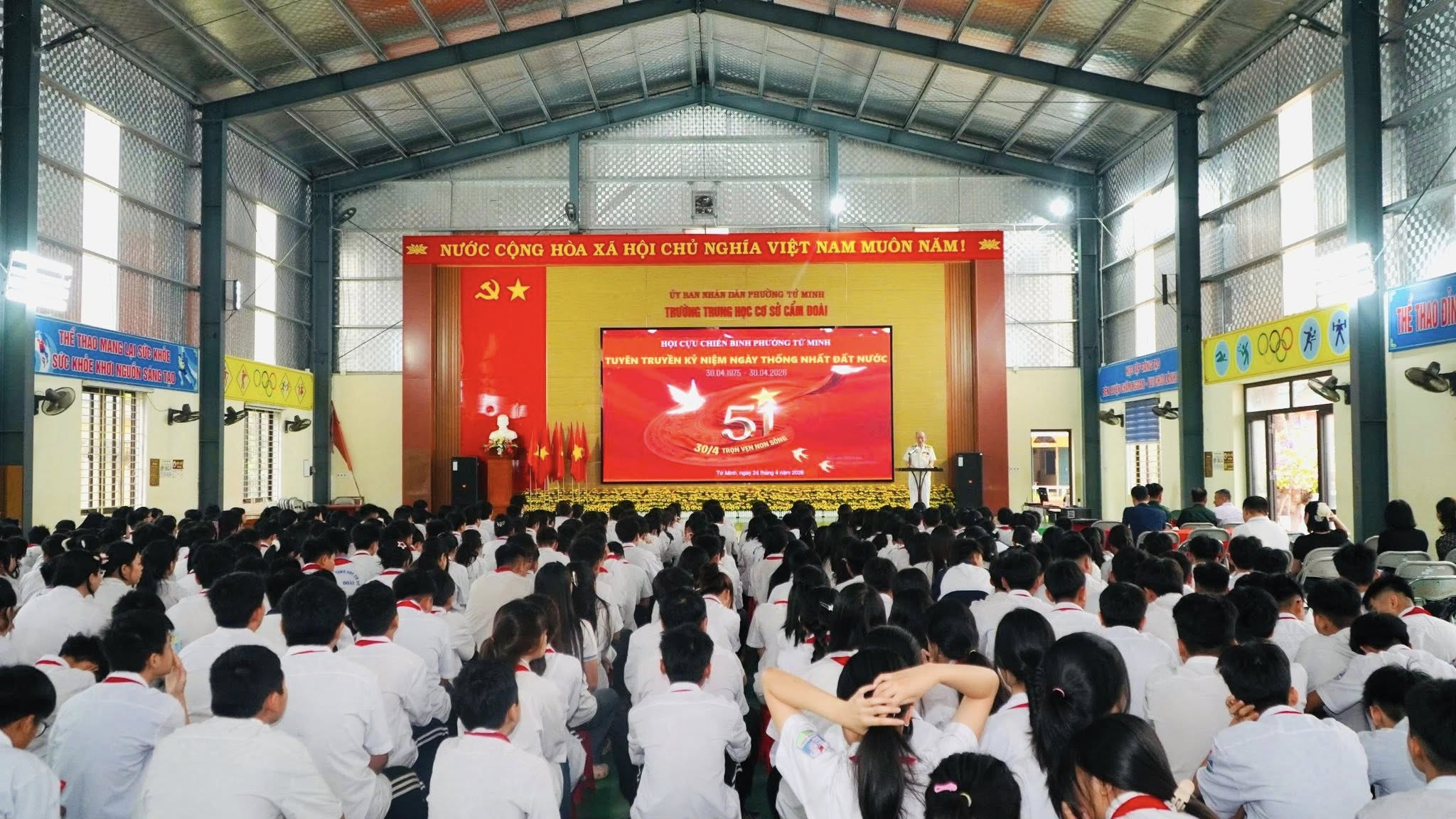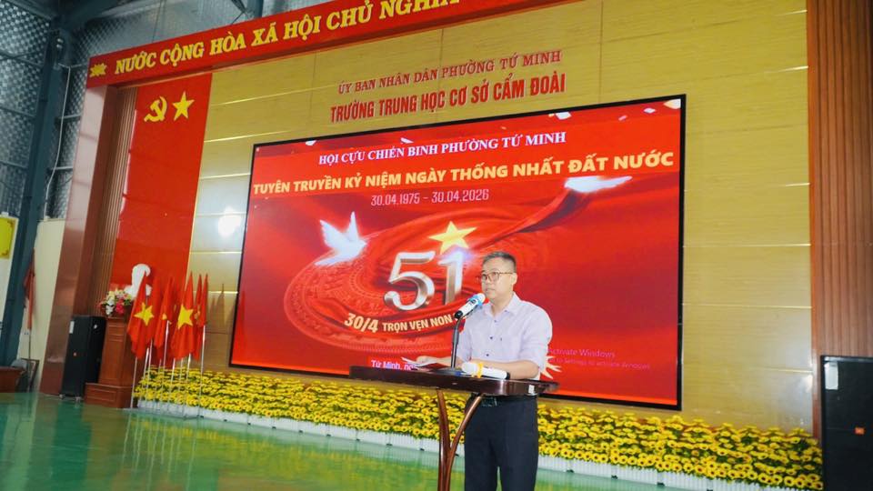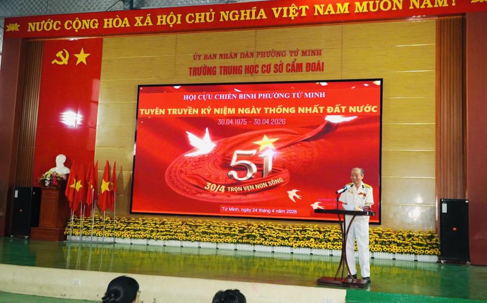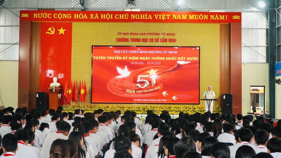 Sáng ngày 24/4, Hội Cựu chiến binh phường Tứ Minh phối hợp với Trường THCS Cẩm Đoài tổ chức buổi tuyên truyền kỷ niệm 51 năm Ngày Giải phóng hoàn toàn miền Nam, thống nhất đất nước (30/4/1975 – 30/4/2026).