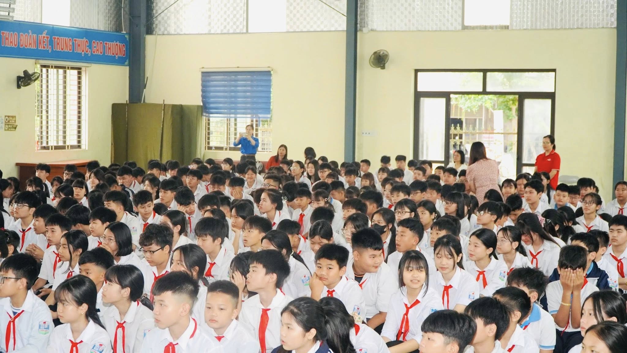 Gần 370 học sinh trường THCS Cẩm Đoài nghe nói chuyện truyền thống nhân kỷ niệm 51 năm ngày giải phóng miền Nam, thống nhất đất nước