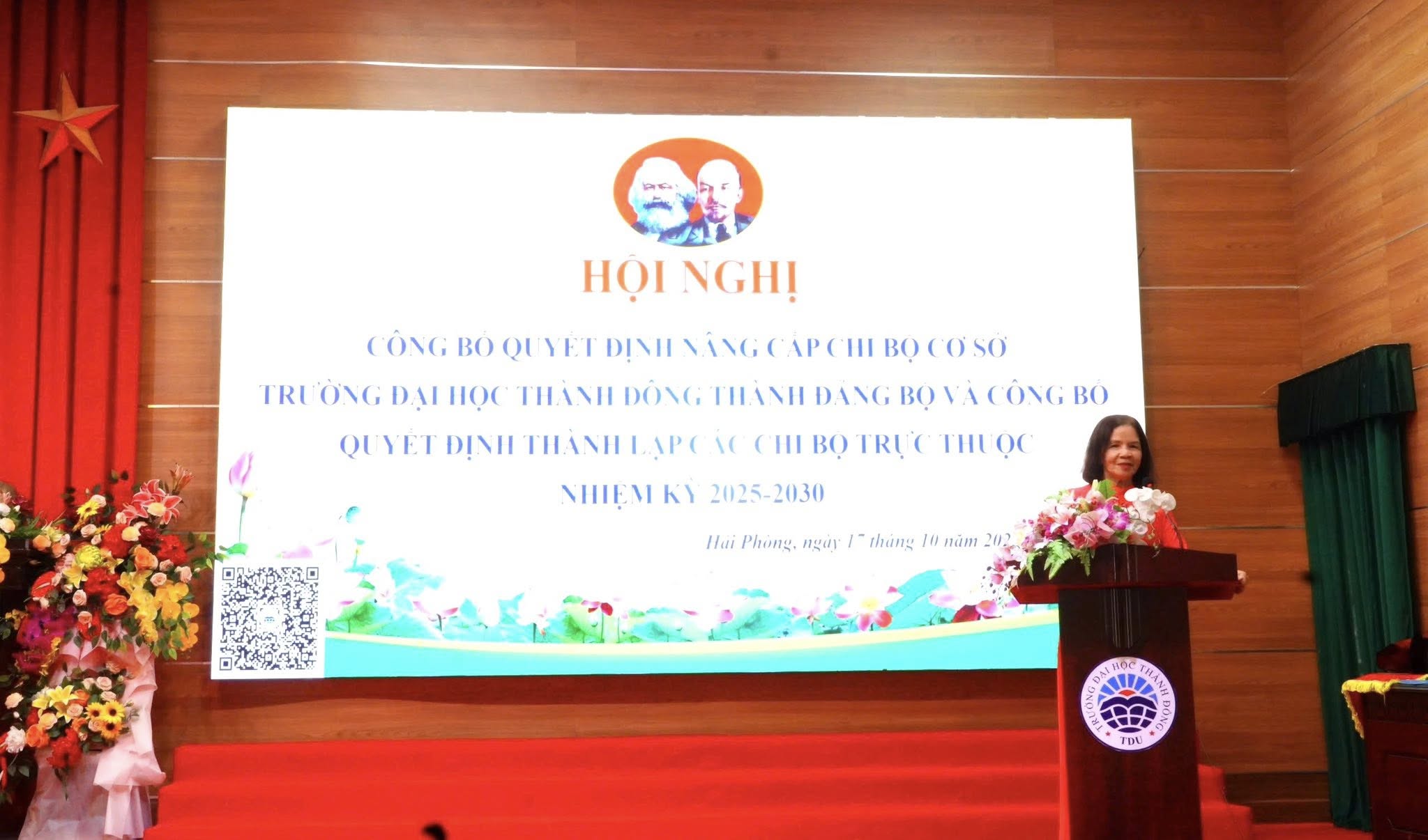 Sáng ngày 17/10, tại Trường Đại học Thành Đông, Đảng ủy phường Tứ Minh, TP Hải Phòng đã tổ chức Hội nghị công bố Quyết định nâng cấp Chi bộ cơ sở Trường Đại học Thành Đông thành Đảng bộ và công bố các Quyết định thành lập các Chi bộ trực thuộc, nhiệm kỳ 2025–2030. Dự và chỉ đạo Hội nghị có đồng chí Nguyễn Tá Duân – Bí thư Đảng ủy, Chủ tịch HĐND phường Tứ Minh; đồng chí Trung - Phó Bí thư Đảng ủy, Chủ tịch UBND phường; các đồng chí trong Ban Thường vụ Đảng ủy, lãnh đạo UBND phường. Về phía Trường Đại học Thành Đông có PGS, TS Lê Văn Hùng - Hiệu trưởng nhà trường; cùng đại diện các tổ chức chính trị - xã hội; cùng toàn thể đảng viên trong trường.