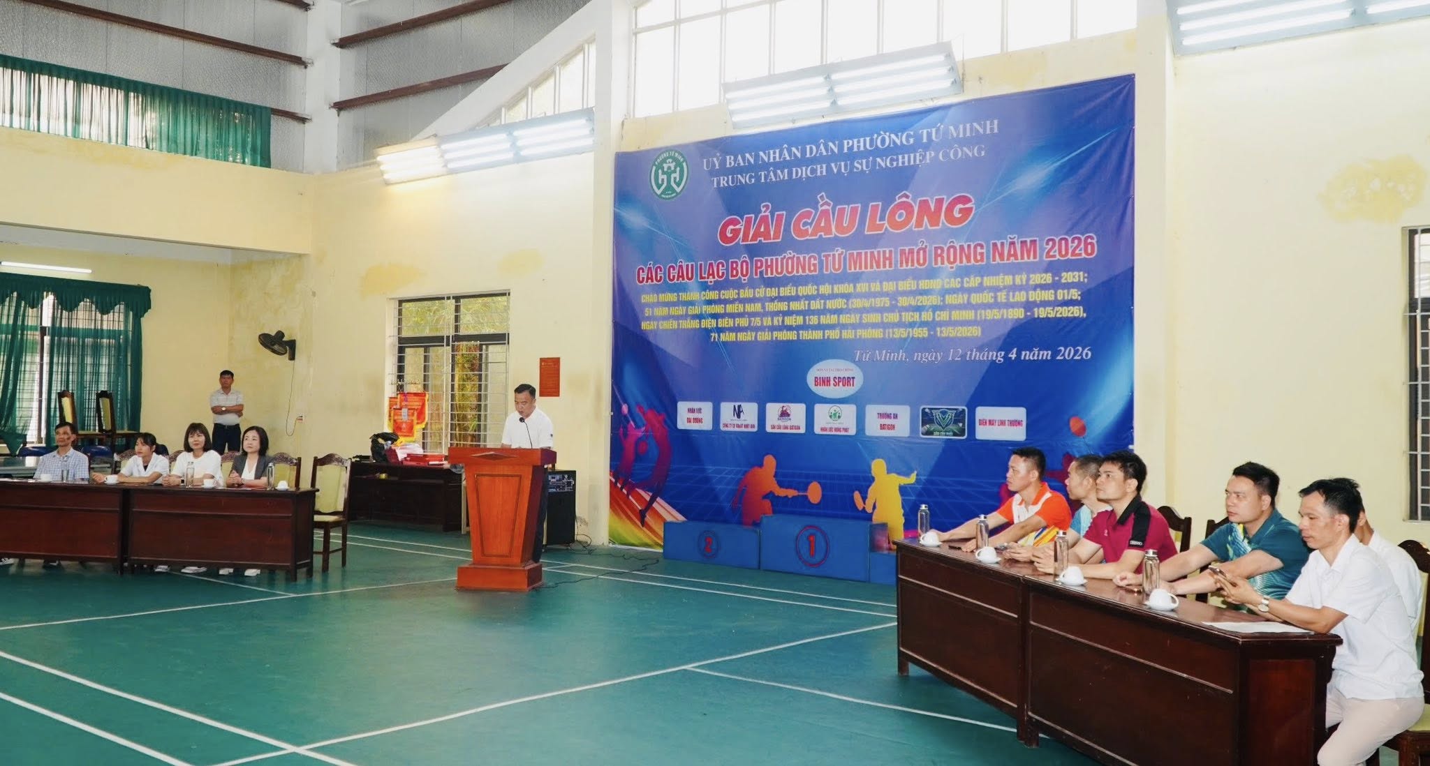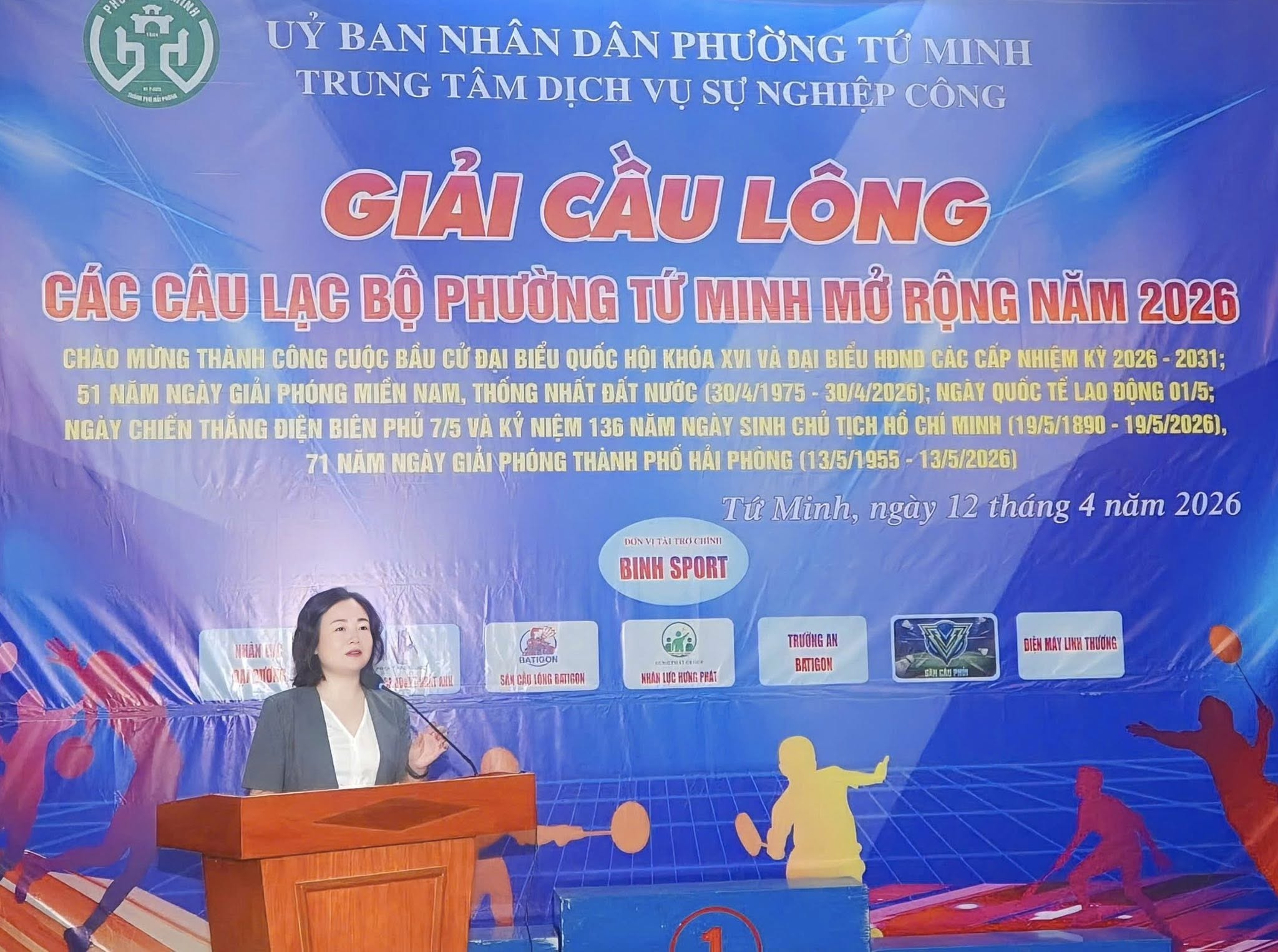 Sáng 12/4, Trung tâm Dịch vụ sự nghiệp công phường Tứ Minh phối hợp cùng Công ty Binh Sport tổ chức khai mạc “Giải cầu lông các câu lạc bộ phường Tứ Minh mở rộng lần thứ I năm 2026”. Dự lễ khai mạc có đồng chí Nguyễn Thị Sâm, Ủy viên Ban Thường vụ Đảng ủy, Phó Chủ tịch UBND phường; đại diện các ban, ngành, đoàn thể địa phương cùng đông đảo vận động viên, nhân dân tham dự.