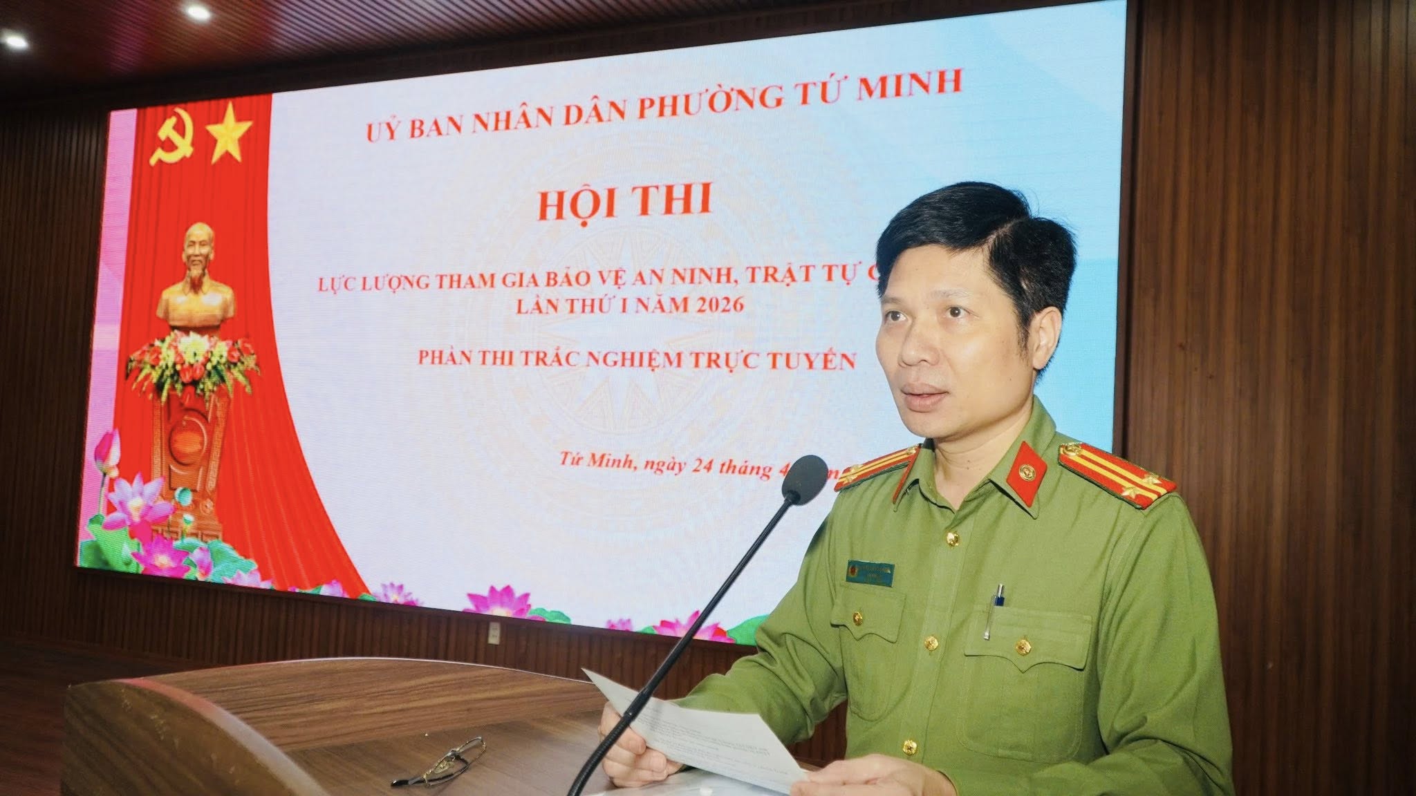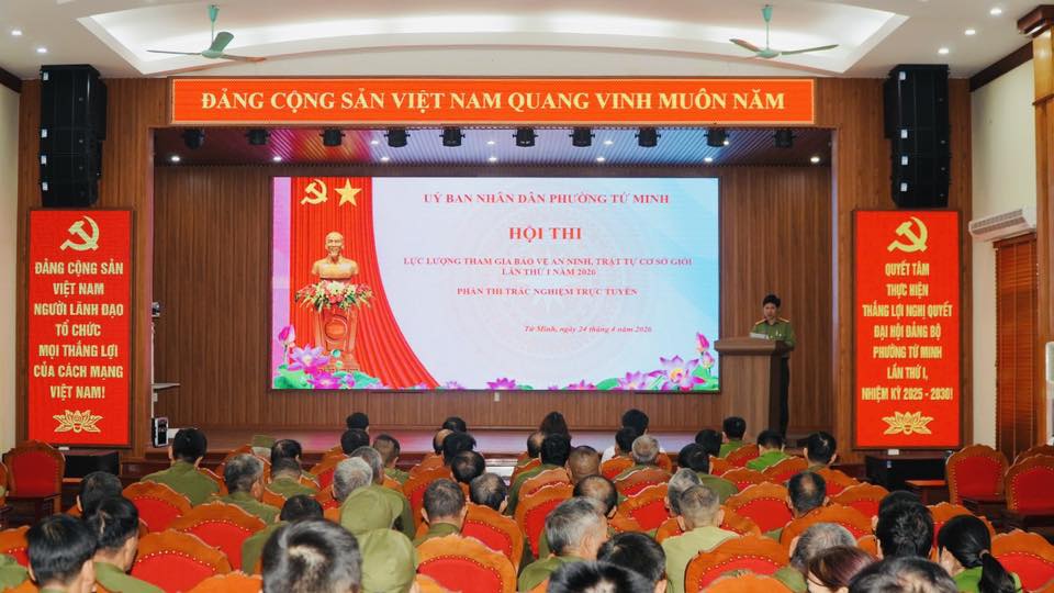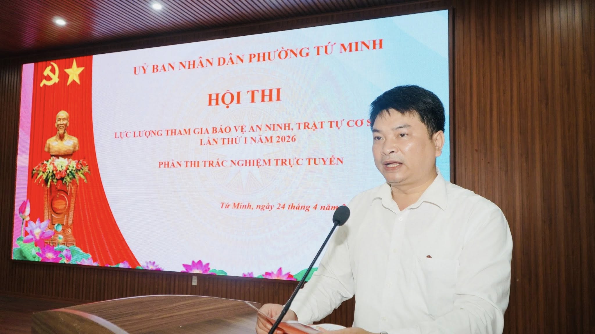 Sáng 24/4, phường Tứ Minh tổ chức khai mạc Hội thi lực lượng tham gia bảo vệ an ninh, trật tự (ANTT) ở cơ sở năm 2026. Dự khai mạc có đại diện lãnh đạo địa phương, Công an phường cùng đông đảo cán bộ, chiến sĩ Tổ Cảnh sát khu vực và lực lượng tham gia bảo vệ ANTT trên địa bàn.