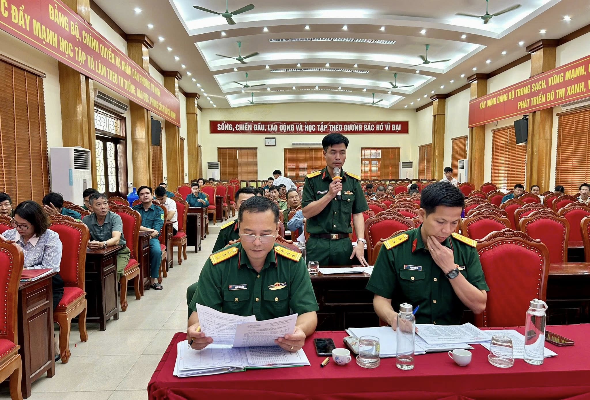 Tham dự Hội nghị có Thượng tá Đặng Văn Luân - Phó Chỉ huy trưởng Ban Chỉ huy phòng thủ Khu vực 3 - Lê Thanh Nghị; đồng chí Vũ Cường - Phó Bí thư Thường trực Đảng uỷ; đồng chí Lê Văn Trung – Phó Bí thư Đảng uỷ, Chủ tịch UBND, Chủ tịch Hội đồng Nghĩa vụ Quân sự (NVQS) phường chủ trì Hội nghị và các đồng chí lãnh đạo đơn vị liên quan.