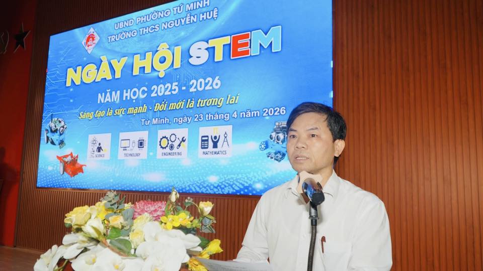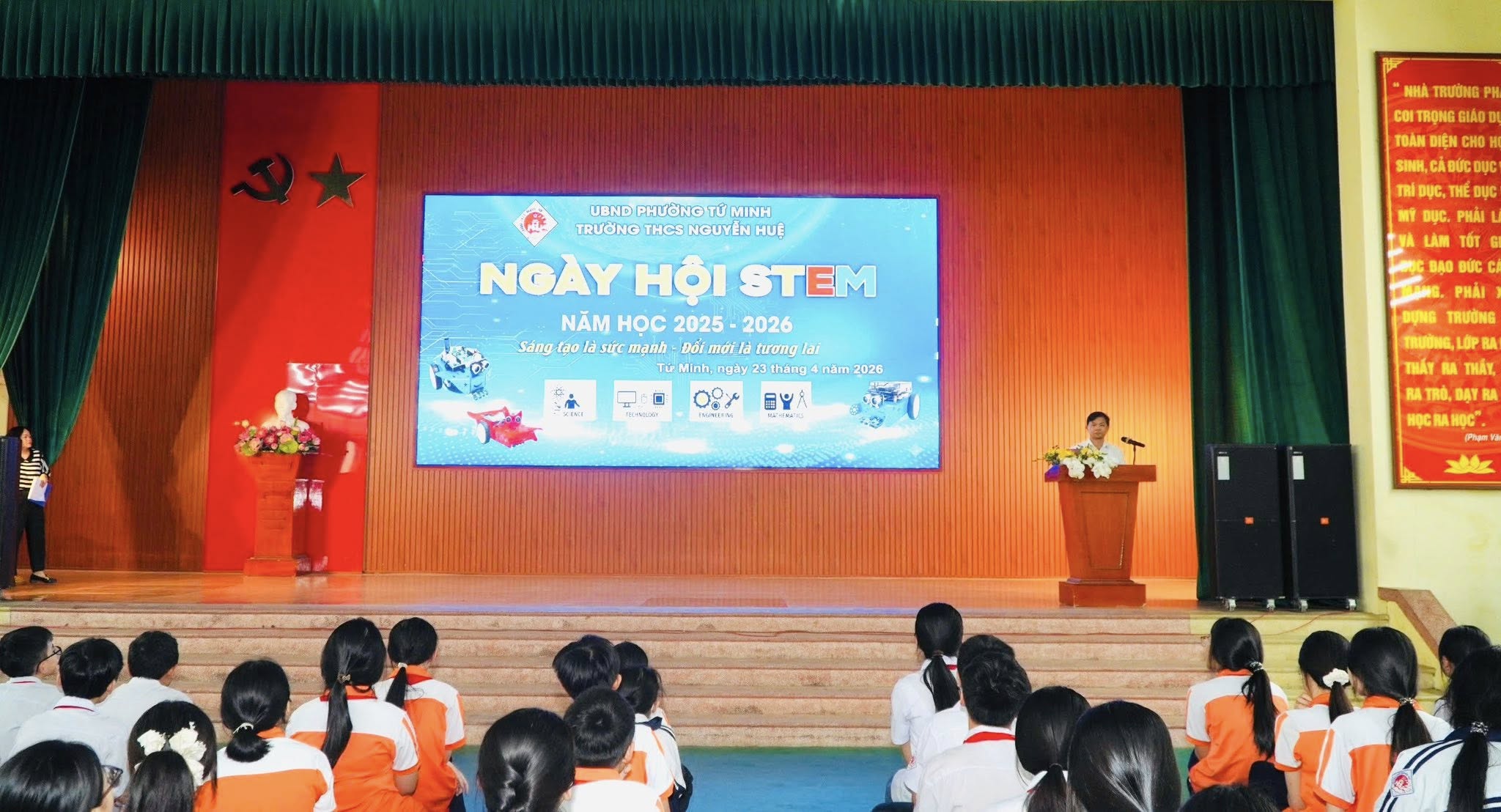 Chiều 23/4, Trường THCS Nguyễn Huệ tổ chức Ngày hội trải nghiệm STEM Robotics năm học 2025–2026 với chủ đề “Thành phố thông minh” và giải đua ô tô mô hình.