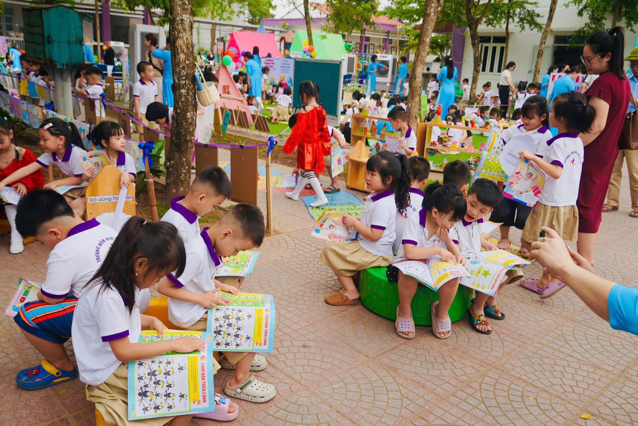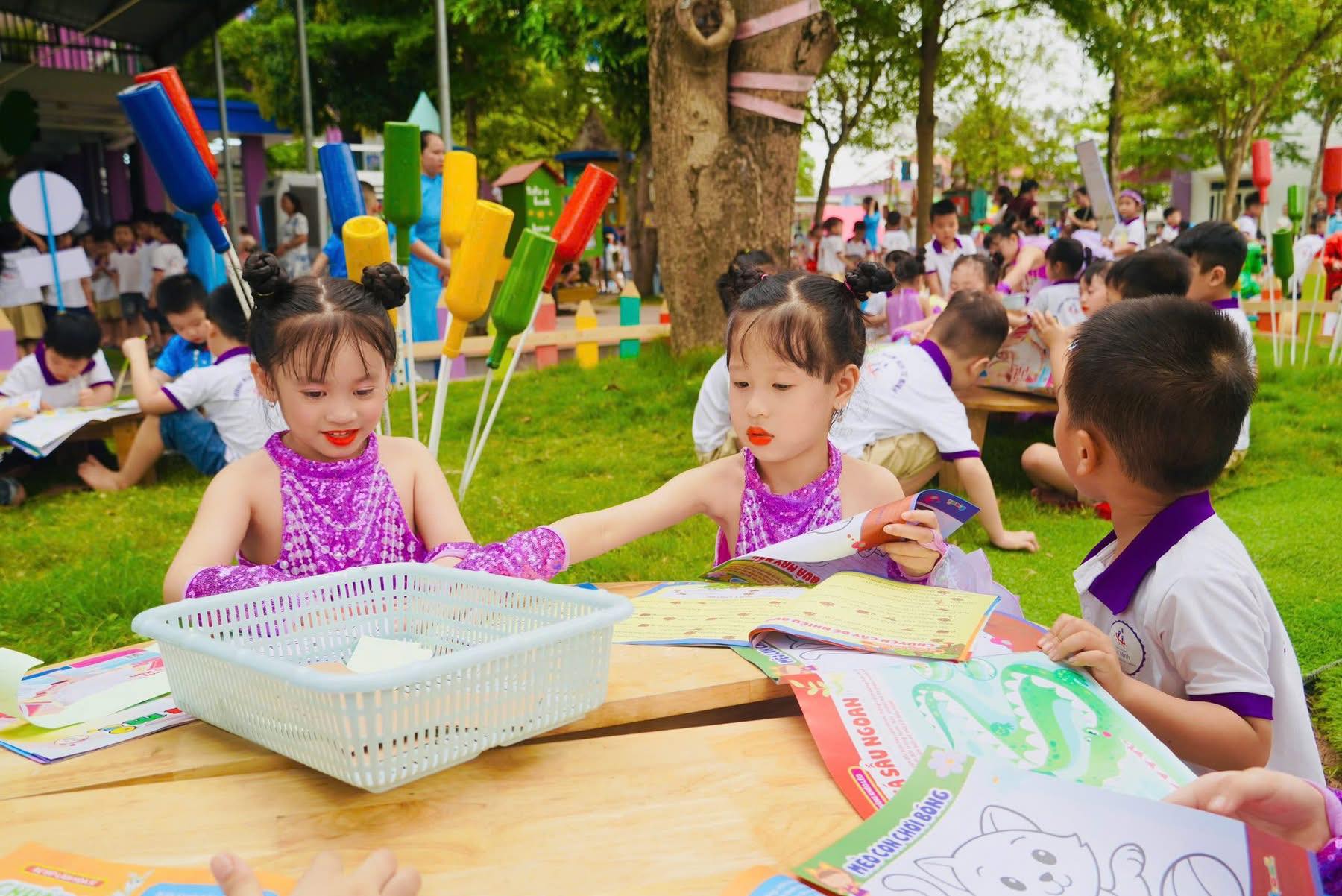 Trong khuôn khổ Ngày hội, học sinh được tham gia nhiều hoạt động phong phú như: biểu diễn văn nghệ, giao lưu tiếng Anh, trò chơi vận động kết hợp ngôn ngữ, trải nghiệm tại các “trạm tri thức” và không gian đọc sách. Các hoạt động được tổ chức sinh động, phù hợp với lứa tuổi, thu hút sự tham gia tích cực của trẻ.