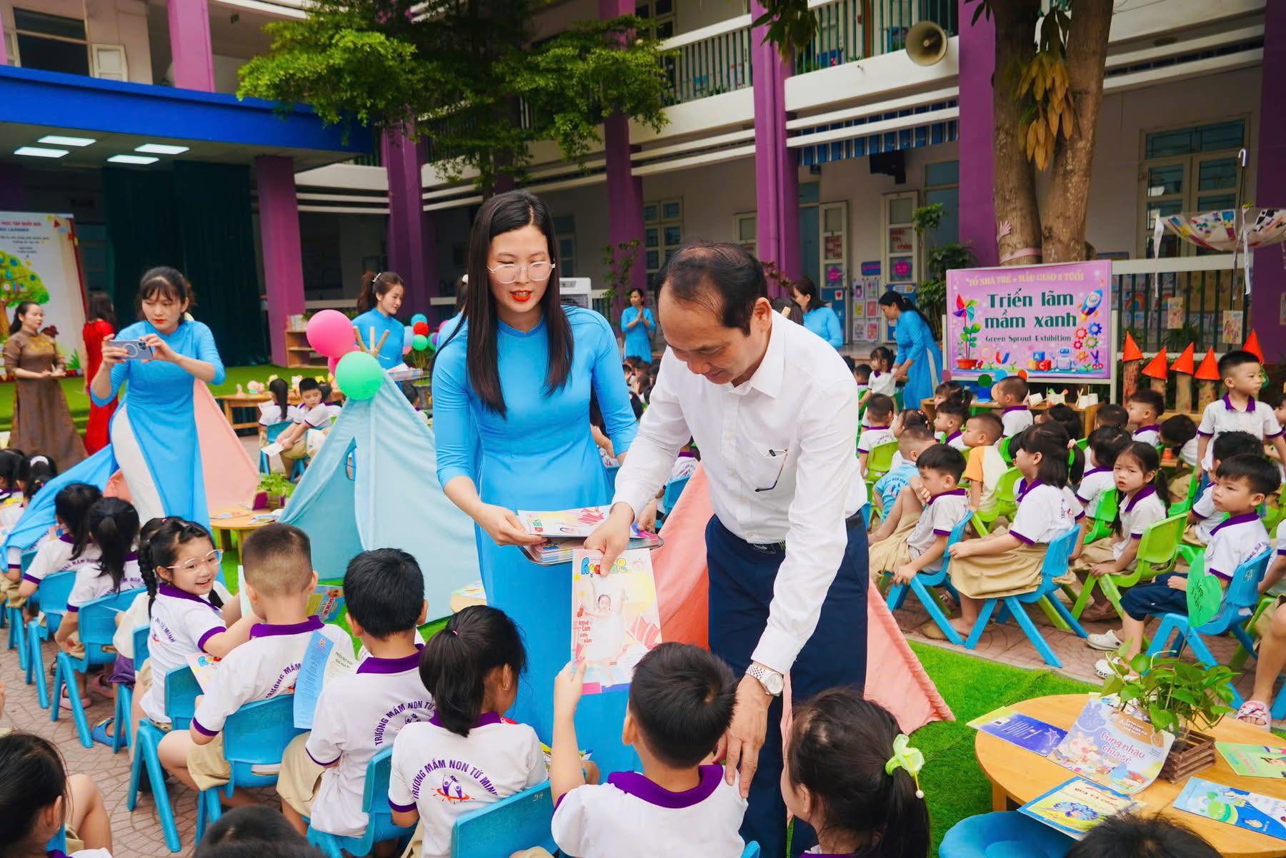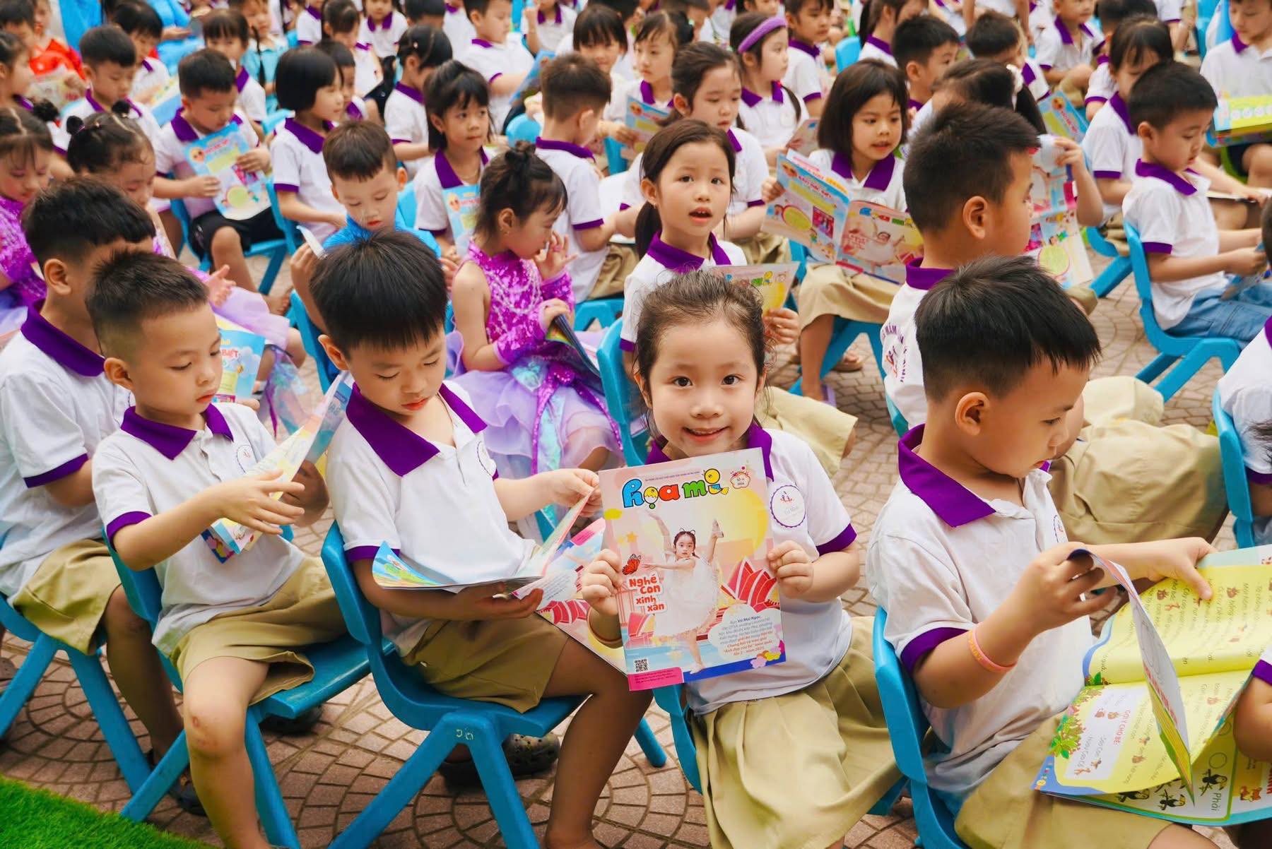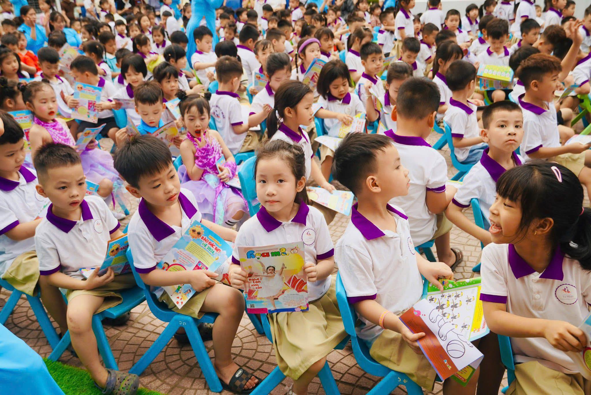 Điểm nhấn của chương trình là nghi thức “mở cuốn sách tri thức” – biểu tượng cho tinh thần học tập suốt đời, khơi dậy niềm say mê khám phá tri thức trong mỗi học sinh. Cùng với đó, mô hình dân vận khéo “Xây dựng môi trường tương tác ngôn ngữ Anh – Việt” chính thức được ra mắt, hướng tới mục tiêu tạo dựng môi trường giáo dục mở, nơi trẻ được tiếp cận song ngữ một cách tự nhiên thông qua các hoạt động hằng ngày như vui chơi, giao tiếp, trải nghiệm. Theo đó, nhà trường chú trọng xây dựng các góc học tập, khu vực trải nghiệm, lồng ghép ngôn ngữ Anh – Việt trong các hoạt động giáo dục; tăng cường sự phối hợp giữa nhà trường, giáo viên và phụ huynh trong việc hình thành môi trường học tập tích cực, giúp trẻ phát triển toàn diện.