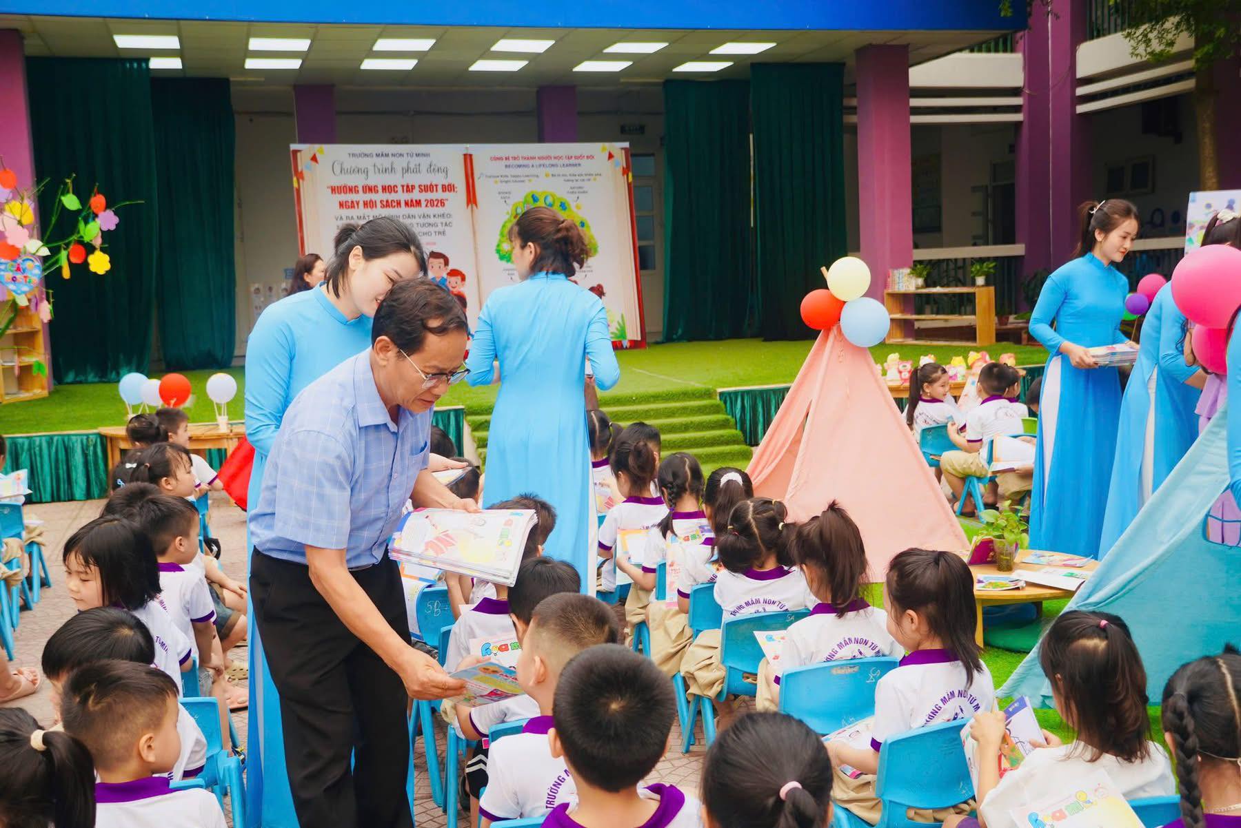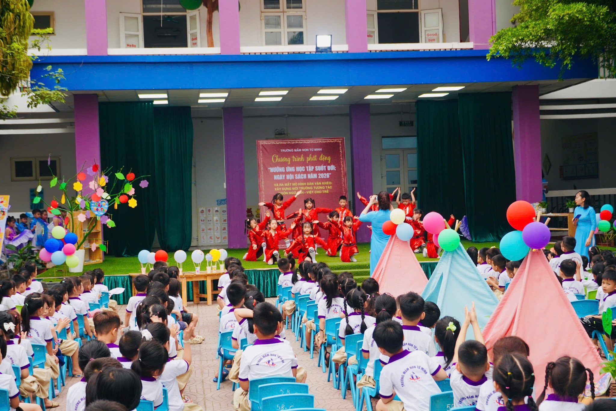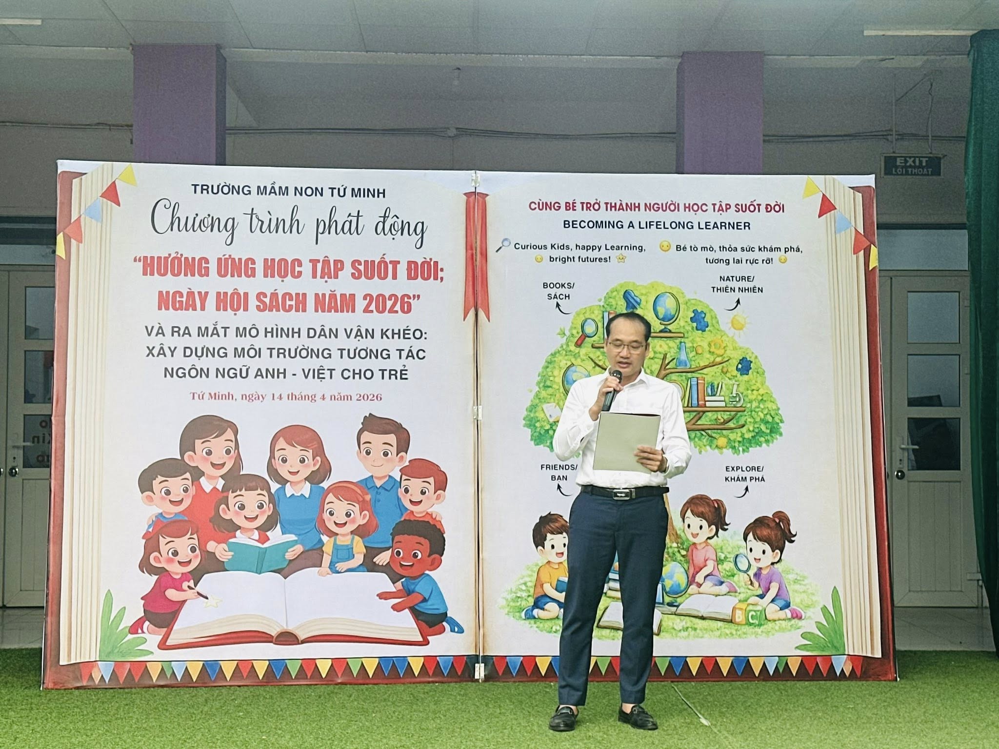 Sáng ngày 14/4, Trường Mầm non Tứ Minh tổ chức chương trình “Hưởng ứng học tập suốt đời và Ngày hội sách năm 2026”, kết hợp ra mắt mô hình dân vận khéo “Xây dựng môi trường tương tác ngôn ngữ Anh – Việt” cho trẻ. Dự chương trình có đại diện lãnh đạo các ban, ngành, đoàn thể, Ban Giám hiệu nhà trường, cán bộ, giáo viên, nhân viên cùng đông đảo phụ huynh và học sinh.