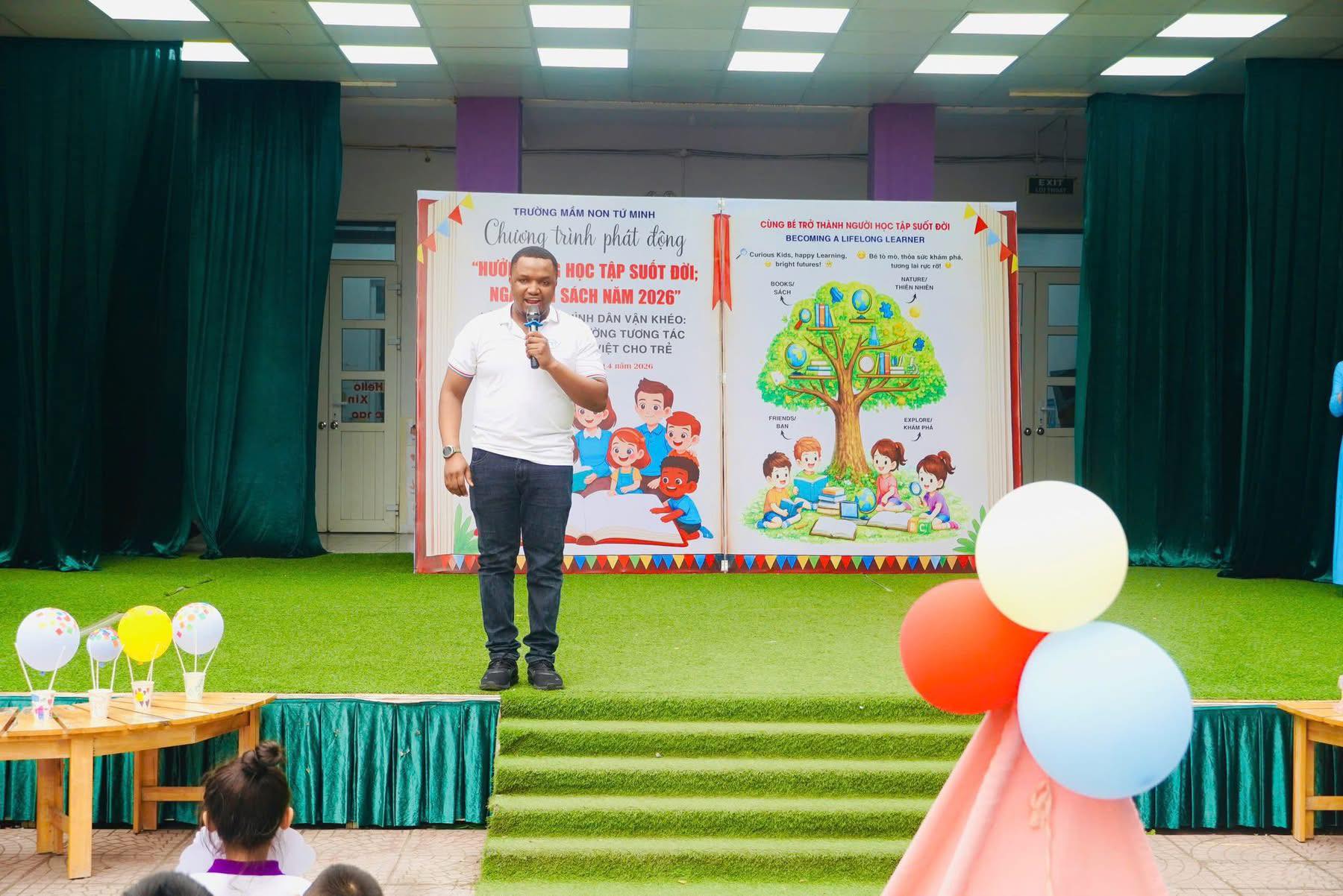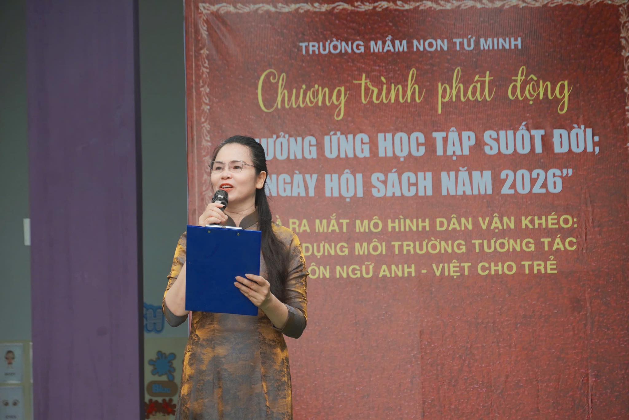 Phát biểu khai mạc, BGH Trường Mầm non Tứ Minh nhấn mạnh: xây dựng thói quen đọc sách ngay từ lứa tuổi mầm non là nền tảng quan trọng giúp hình thành nhân cách, phát triển tư duy và nuôi dưỡng tâm hồn trẻ. Bên cạnh đó, việc tạo môi trường làm quen với ngoại ngữ, đặc biệt là tiếng Anh, góp phần giúp trẻ mạnh dạn, tự tin trong giao tiếp, từng bước hình thành năng lực hội nhập trong tương lai.